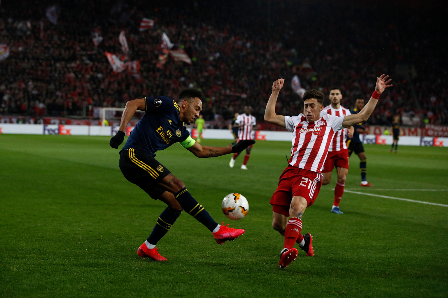Арсенал спечели с минималното 1:0 гостуването си на Олимпиакос в Пирео в първи мач между двата тима от 1/16 финалите в Лига Европа. "Топчиите" стигнаха до успеха след попадение на Александър Лаказет в 81-ата минута.