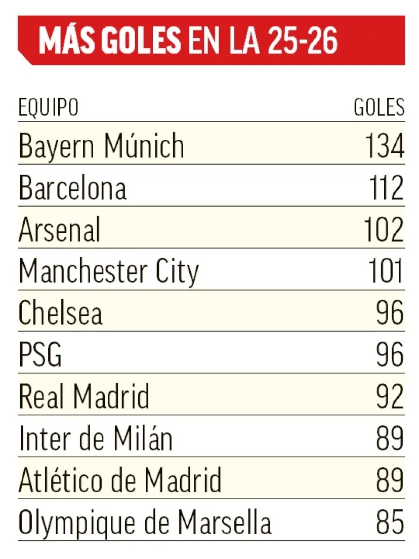 Най-много голове през сезон 2025/26 - Източник: Marca