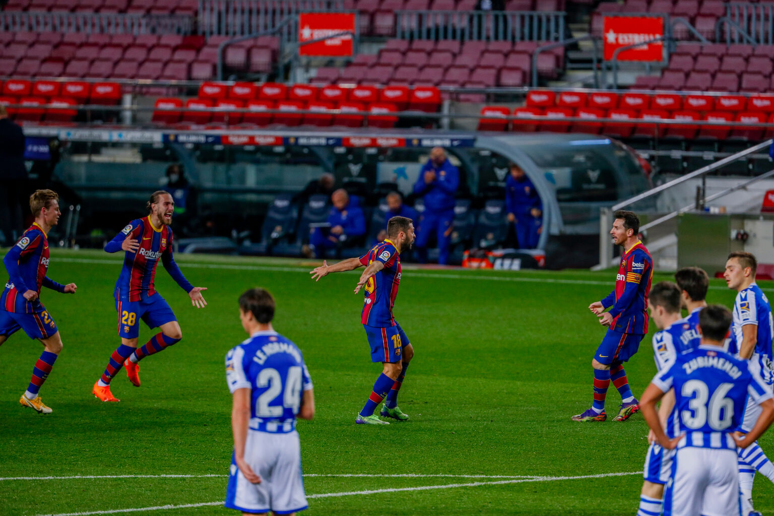 Барселона живна и спечели с 2:1 домакинството си на Реал Сосиедад. Успехът дойде след обрат още през първото полувреме. Гостите откриха чрез Жозе, но с попадения на Жорди Алба и Де Йонг стигнаха до трите точки.