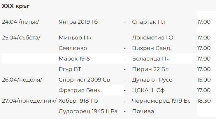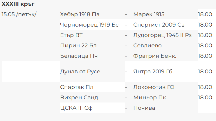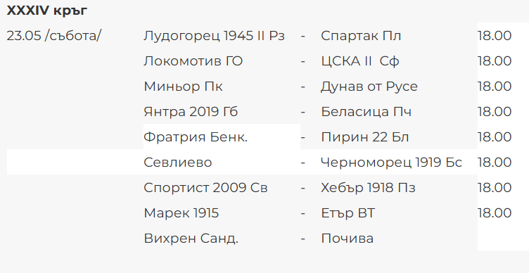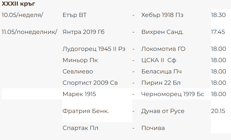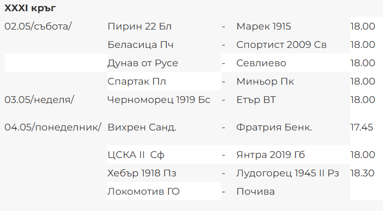 Спортно-техническата комисия към Българския футболен съюз обяви програмата за оставащите кръгове във Втора лига.