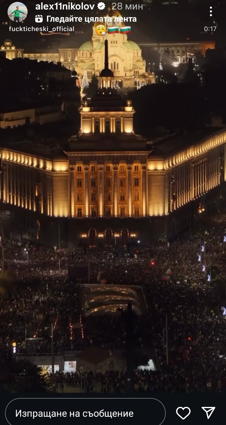 Малко по-късно вечерта към общото недоволство се включиха звездата в българския волейбол Алекс Николов и капитана на националния отбор Кирил Десподов, който в четвъртък ще играе срещу Лудогорец. Волейболната националка Христина Вучкова също сподели снимка от протеста.