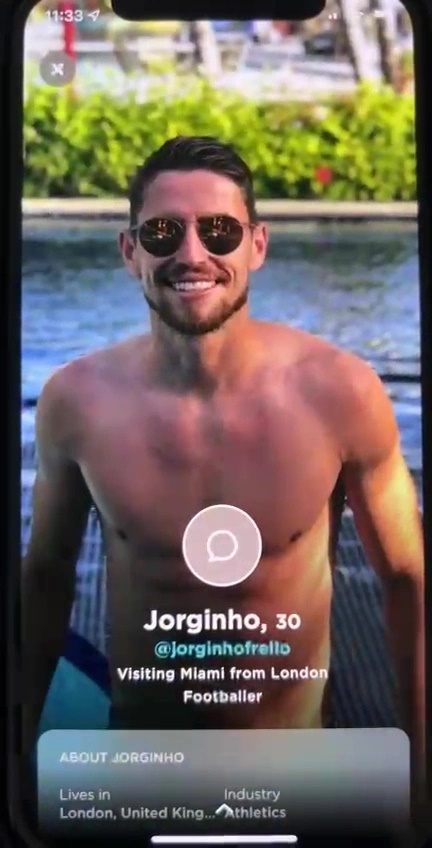Футболистът на Челси Жоржиньо използва приложението за запознанства на знаменитости „Рая“, докато е със съотборниците си в Маями.