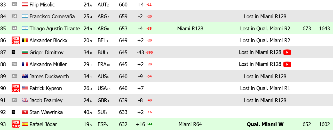 Това означава, че българинът ще изпадне от първите 80 в света. Следващото обновяване на класацията е на 30-и март, а Григор в момента е 87-и в класирането на живо.