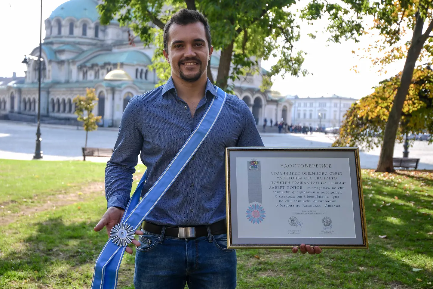 Кметът на София Васил Терзиев и председателят на Столичния общински съвет (СОС) Цветомир Петров връчиха отличието „Почетен гражданин на София“ на скиора Алберт Попов. Решението за удостояването с високото звание беше взето от Столичния общински съвет в знак на признание за спортните му постижения и приноса му за популяризирането на българския спорт.