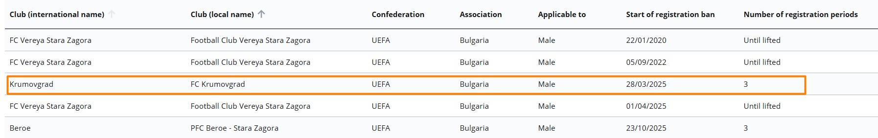 „Към днешна дата отборът на ФК Крумовград няма наложена забрана от ФИФА за регистрация на нови футболисти“, написаха от клуба.