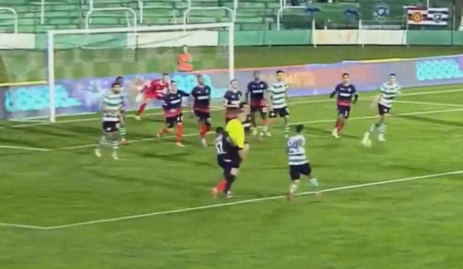 През първото полувреме на мача между Черно море и Лудогорец на „Тича“ от 14-ия кръг на Първа лига се стигна до куриозна ситуация.