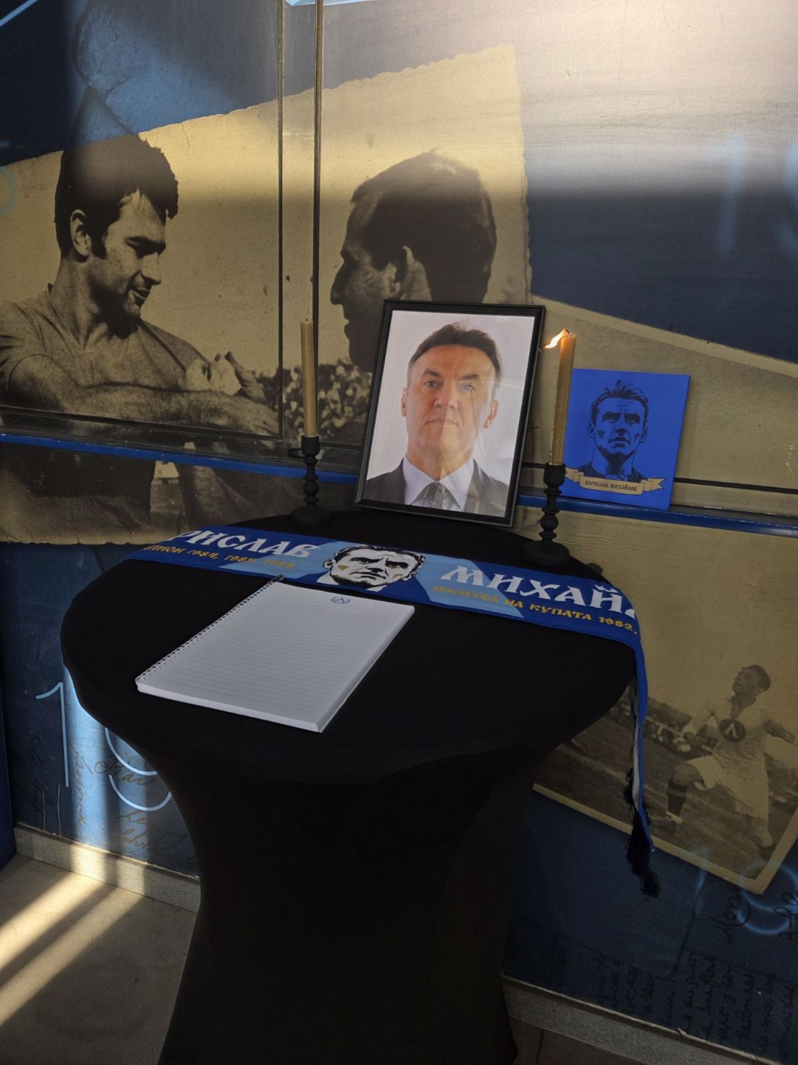 В преддверието на клубната експозиция пред Сектор „А“ на стадион „Георги Аспарухов“ е обособен траурен кът, където всеки може да отдаде своята почит към легендата на „синия“ клуб и българския футбол Борислав Михайлов.