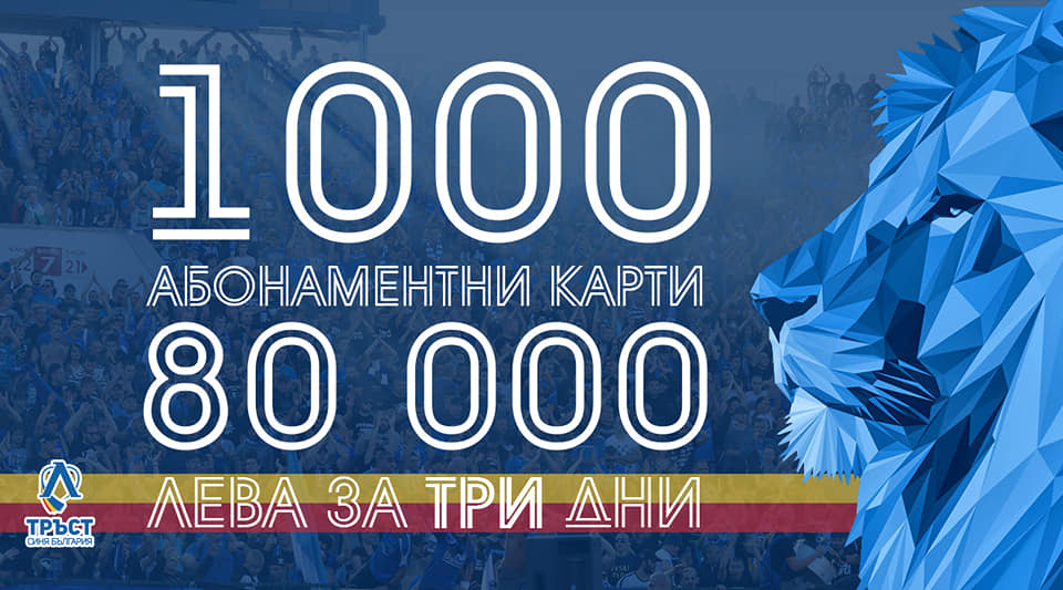 Благодарение на активизацията на "сините" фенове в последните дни в касата на клуба са влезли близо 80 хиляди лева. Също така от тръста са изчислили, че на всеки седем минути клубът продава по една нова карта.