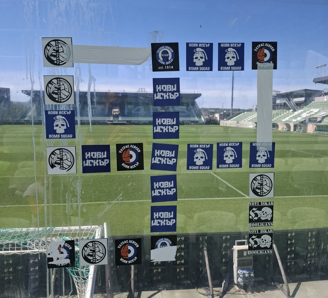 Привърженикът, който е в сектора за гости, залепя върху плексигласовата преграда над 20 стикера във формата на свастика. Той бива установен след преглед на записите от камерите и се съставя акт за установяване на административно нарушение.