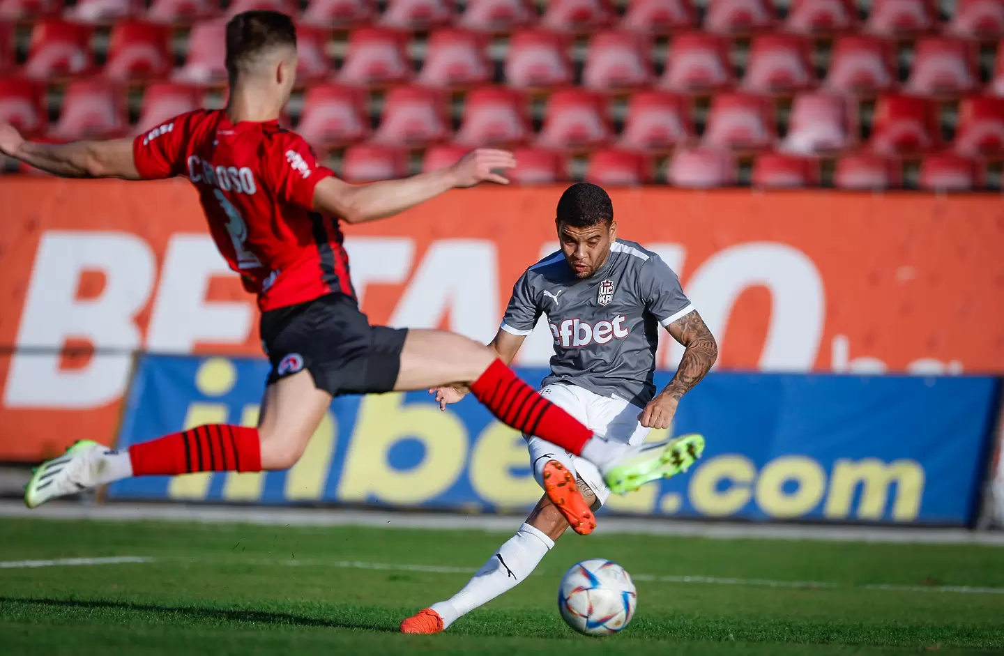 Първата опасност в срещата дойде в 9-ата минута. Георги Русев центрира от ъглов удар. Бабукар Гайе се размина с топката, но защитник на домакините се намеси и изчисти топката.