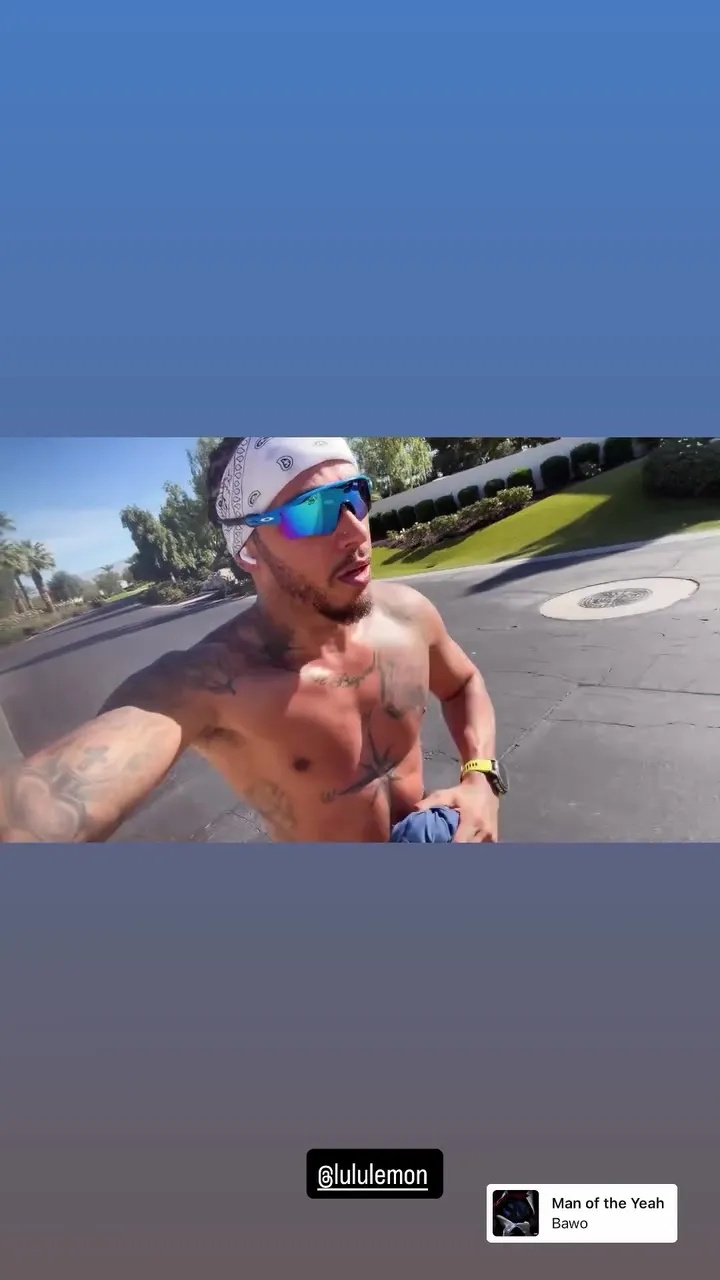 Хамилтън също така сподели и друго видео, на което се вижда как тренира по време на бягане на открито по време на пътуването си до САЩ с Ким Кардашиян.