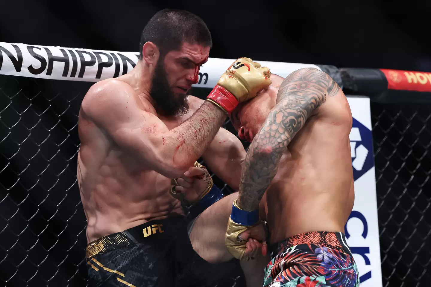 Шампионът на UFC Ислам Махачев защити титлата си в лека категория (до 70 килограма), след като победи бившия носител на временния пояс в дивизията Дъстин Порие пред погледа на кандидата на Републиканската партия за президент на САЩ Доналд Тръмп.