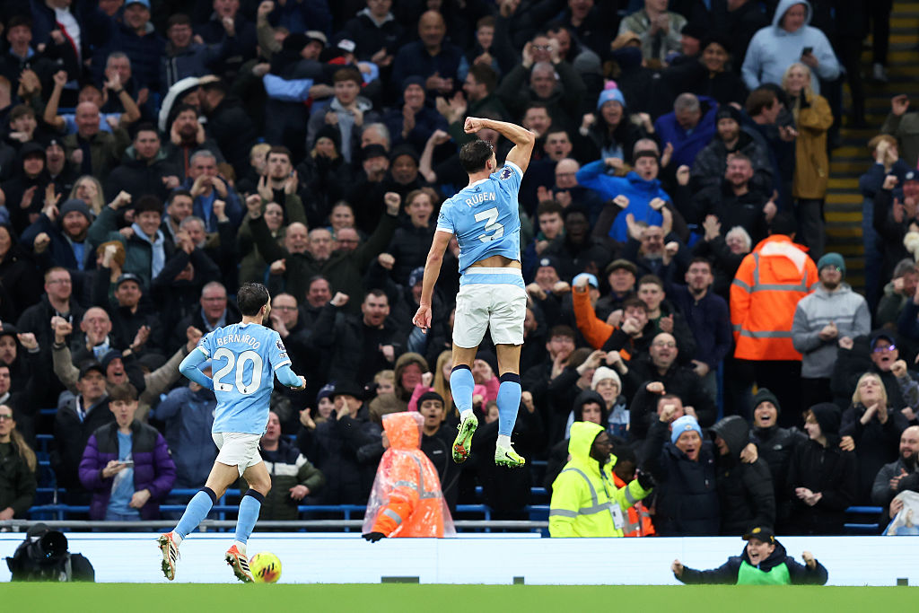 Манчестър Сити поведе в 31-ата минута, когато Раян Шерки намери Рубен Диаш, а той с мощен шут от дистанция разстреля Робин Руфс.