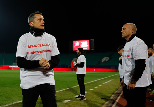 Двата отбора излязоха на терена със специални фланелки в подкрепа на Любослав Пенев, който се бори с коварно заболяване.
