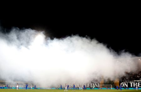 Срещата бе прекъсната за 3 минути в 17-ата минута заради димка, която феновете запалиха на стадиона.