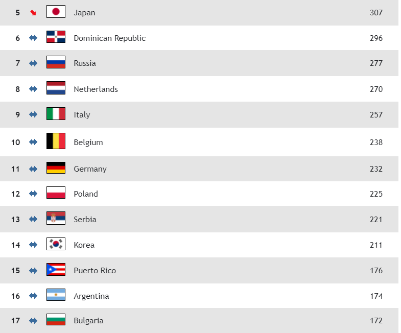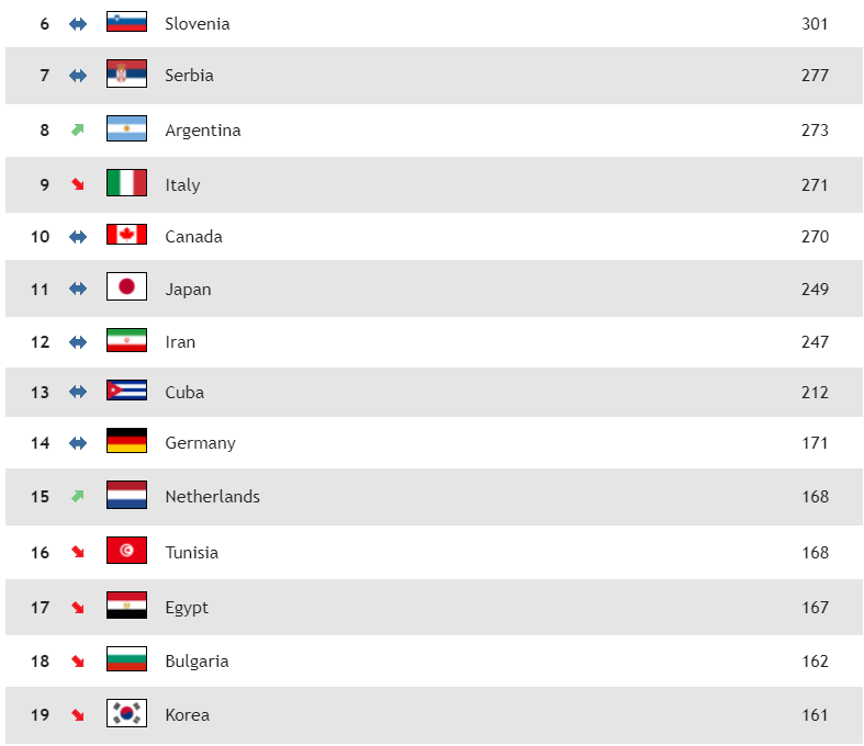 В същото време женският ни национален отбор по волейбол е 17-и със 172 точки. „Лъвиците“ триумфираха в Златната лига в Русе и за пръв път заемат по-висок ранг от мъжкия ни представителен тим.
