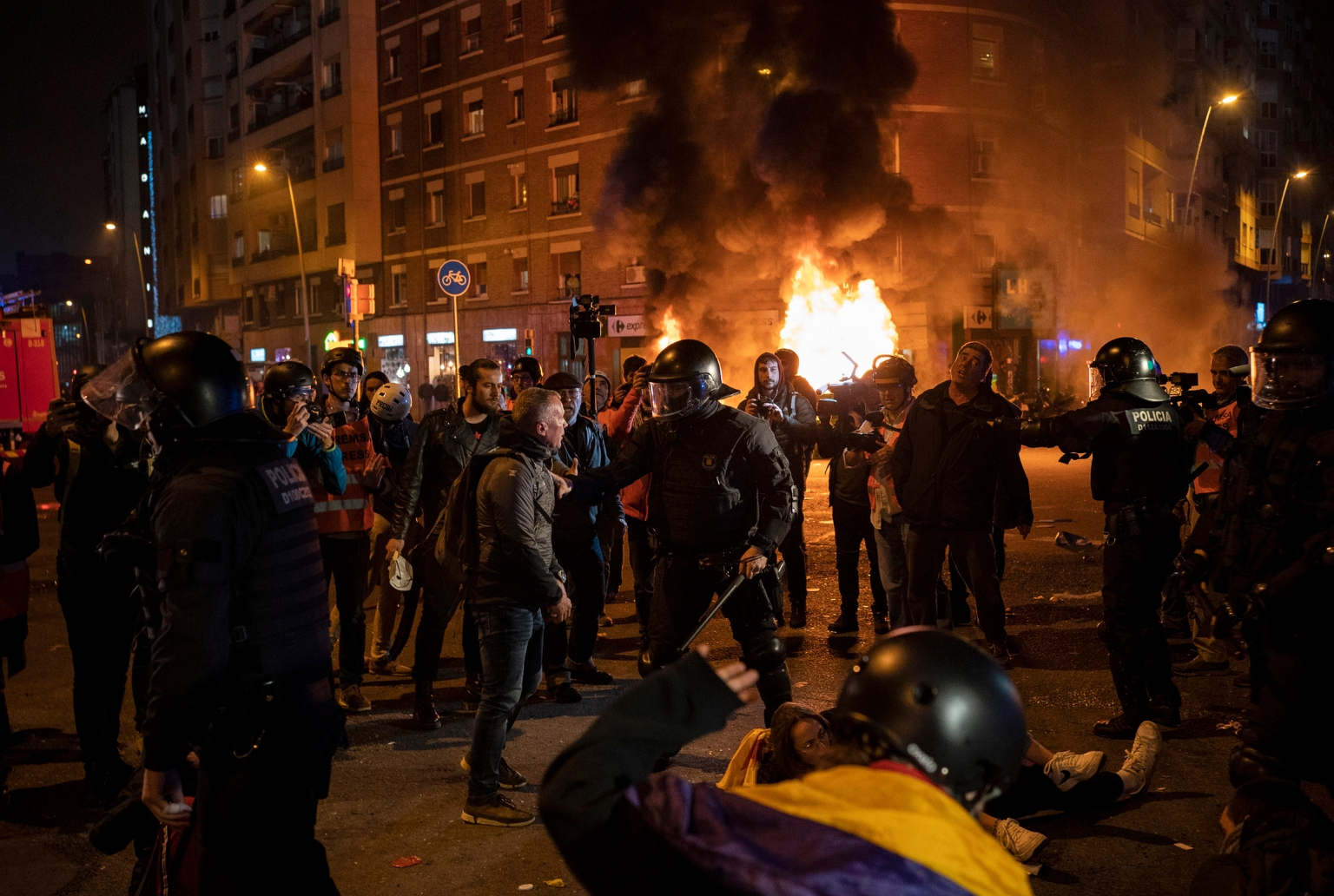 Полицията не допусна безредиците да стигнат до постъпите на „Камп Ноу“, а протестиращите бяха овладени още в първия етап.