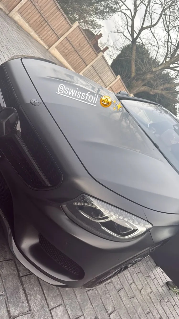 Швейцарската компания за тунинг Swissfoil публикува в Instagram драматично видео, което разкрива персонализирания Mercedes-Benz GLE Coupe AMG на футболистката. Фирмата е трансформирала автомобила от брилянтно бял в елегантен матово черен цвят чрез цялостно фолиране.