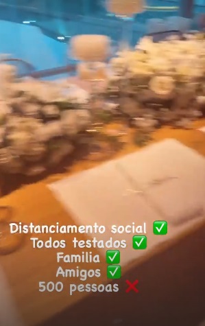 След това той показа подредената си маса, като гостите бяха настанени през стол, за да се придържа към социалното дистанциране. Неймар разкри, че се събира с близки приятели и семейство, но със сигурност няма да присъстват 500 души.