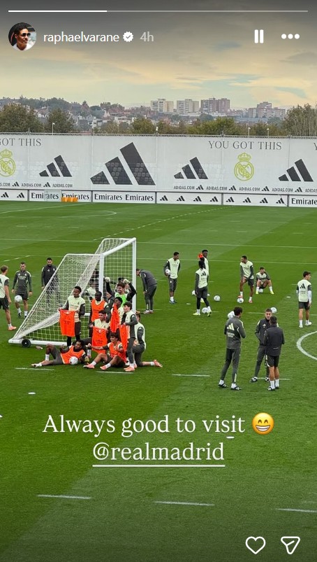 Бивщшият френскки национал, който шокира футболния свят с решението си да прекрати кариерата си едва на 32 години, прекара няколко дни в испанската столица и посети своите бивши съотборници. Варан изгледа тренировката и публикува снимки от посещението си в социалните мрежи. Очаква се утре да бъде на трибуните на „Сантяго Бернабеу“ за двубоя на Реал срещу Валенсия.