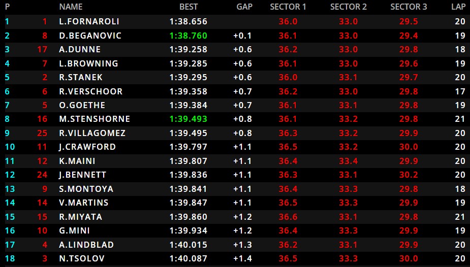 Той финишира свободната тренировка с 18-о време – 1:40.087, като завъртя 20 обиколки. Цолов изостана на 1,4 секунди зад лидера Леонардо Форнанони, който спря хронометъра на 1:38.656.