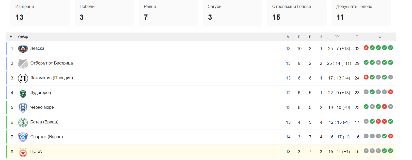 ЦСКА 1948, който в момента се намира на второто място в таблицата, е изписан като "Отборът от Бистрица".