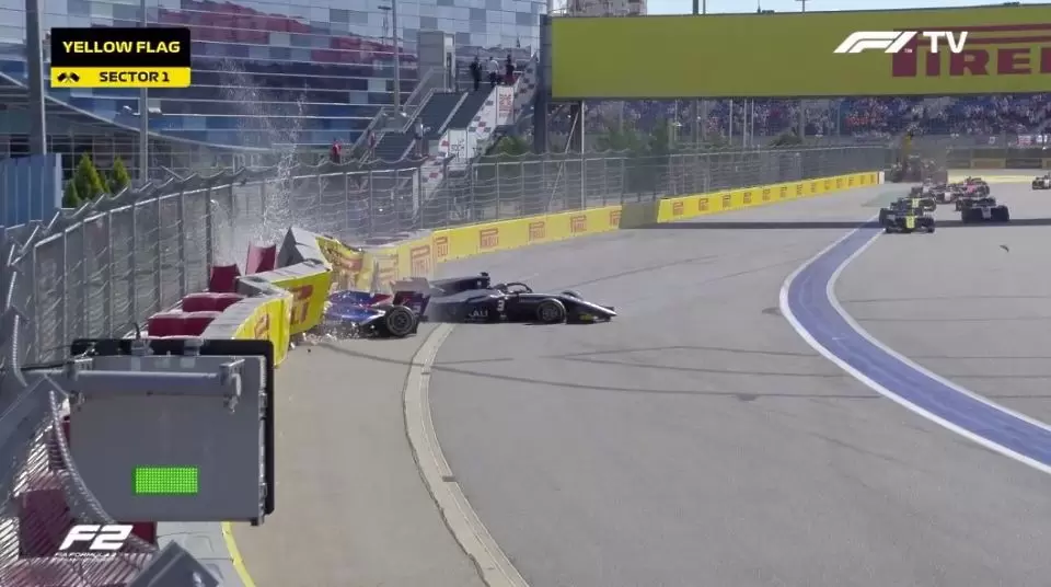 Веднага след старта на състезанието в Сочи в неделя сутрин Нобухару Мачушита и Никита Мацепин се сблъскаха във втори завой. Руснакът се заби в съперника си, който секунда по-рано се бе разбил в предпазните ограждения.