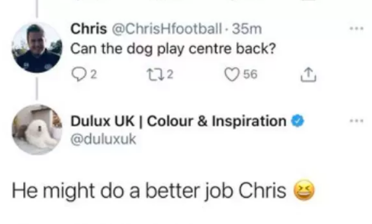 Самата сделка на Тотнъм с компанията бе обявена със снимка на куче. Кадърът също предизвика закачливи коментари от фенове. Един от тях гласеше, че кучето от снимката би могло да свърши работа на мениджъра Жозе Моуриньо в центъра на отбраната. Отговорът на фирмата за бои и лакове бе „Може би ще се справи по-добре“.