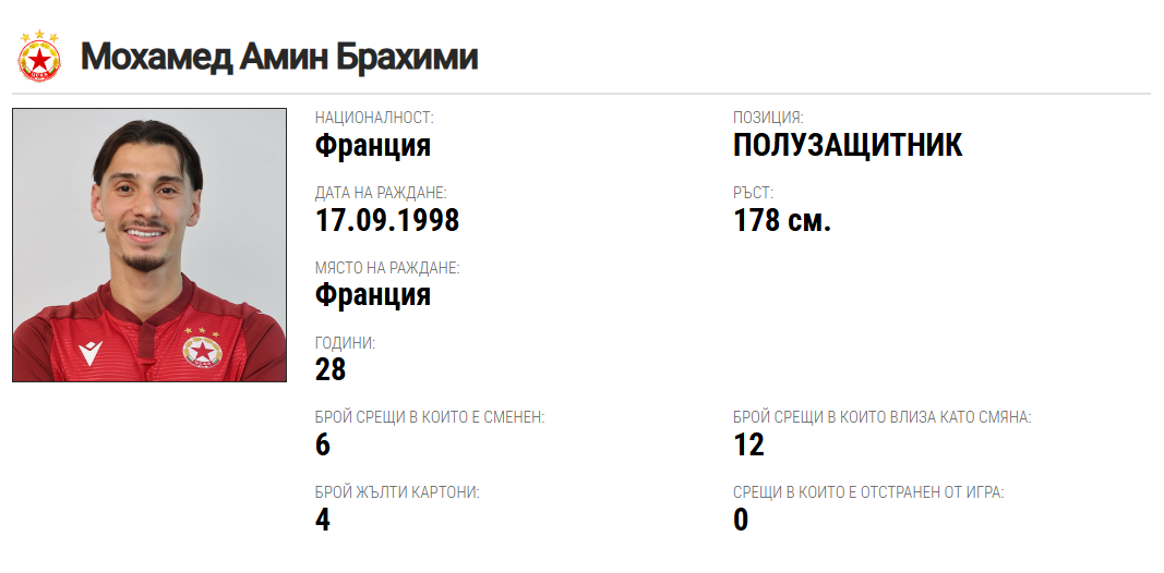 Това сочи справка в сайта на БФС, където срещу името на Брахими е изписано, че той има 4 жълти картона, получени в мачовете срещу Арда (5-и кръг), Добруджа (12-и кръг), Септември (23-ти кръг) и Берое (28-и кръг).