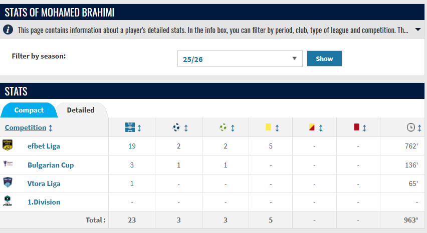 Проверка в статистиката на БФС показва, че според централата, Брахими има 4 жълти картона. В същото време статистическите сайтове, сред които и най-авторитетният такъв - Transfermarkt, показват цифрата 5 срещу броя жълти картони на крилото.