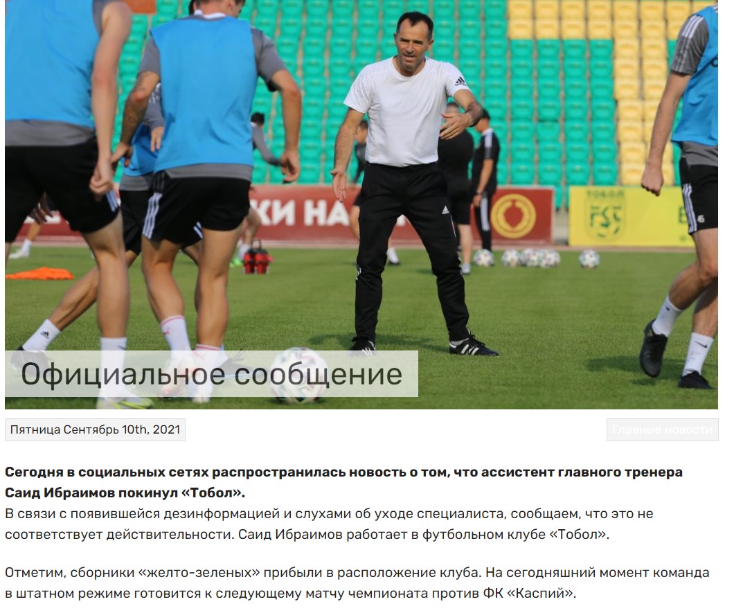„Във връзка с появилата се информация и слухове за напускането на специалиста ви информираме, че това не е вярно. Ибраимов е част и ще продължи да бъде част от Тобол“, написаха от клуба.
