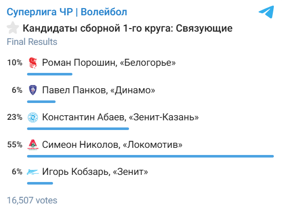 Гласуването на феновете за №1 по постове за първия полусезон в руското волейболно първенство се проведе между 21 и 25 януари в Телеграм канала на шампионата.