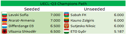 В случай, че отпадне в първия кръг на Шампионска лига, каквито са очакванията на този етап, Левски ще бъде поставен в шампионския път в третия кръг от Лигата на конференциите, както и в плейофите за третия по сила турнир на УЕФА, като се прогнозира влизане в основната му фаза.