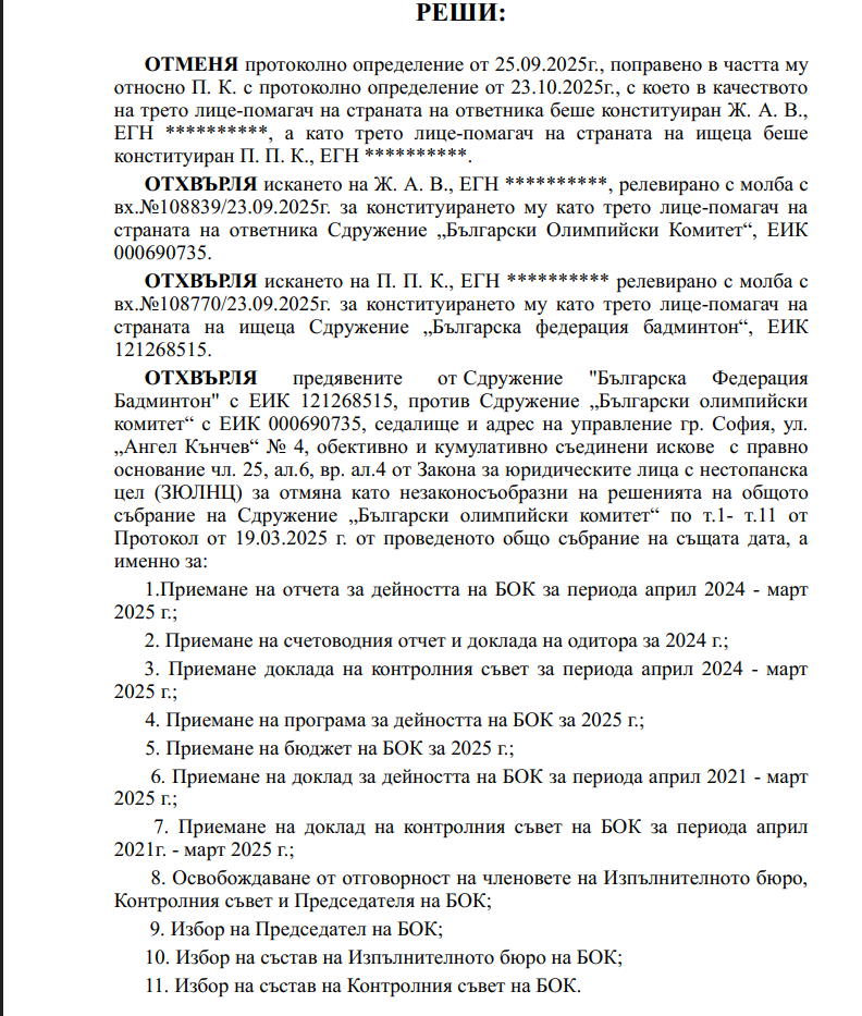 Софийският градски съд (СГС) потвърди избора на Весела Лечева за председател на Българския олимпийски комитет (БОК), видя dsport. Решението е на първа инстанция.
