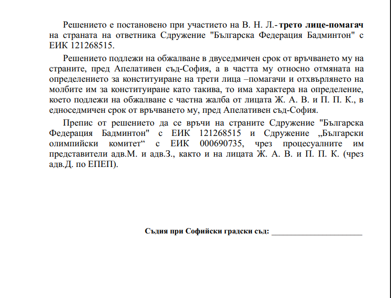 След избора на Лечева няколко помещения в сградата на Комитета бяха запечатани по искане на Стефка Костадинова с довод „надлежно предаване на документация“. Юристите от екипа на Лечева бяха категорични, че изборът е незабавен, но вместо това в СГС бяха подадени общо шест искови молби, три от които изискаха спиране на новото ръководство в Търговския регистър (ТР).