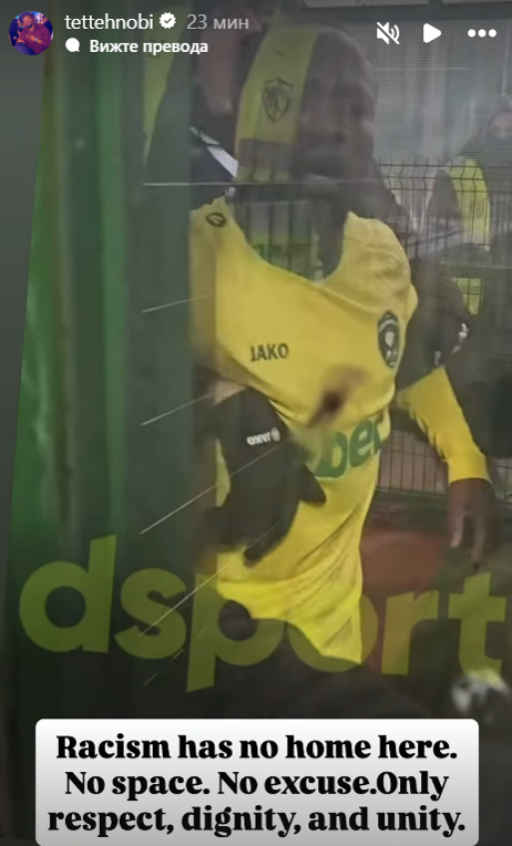 „Расизмът няма дом тук. Няма място. Без извинение. Само уважение, достойнство и единство“, написа ганаецът на стори в Instagram, публикувайки откъс от ексклузивното видео на Dsport.