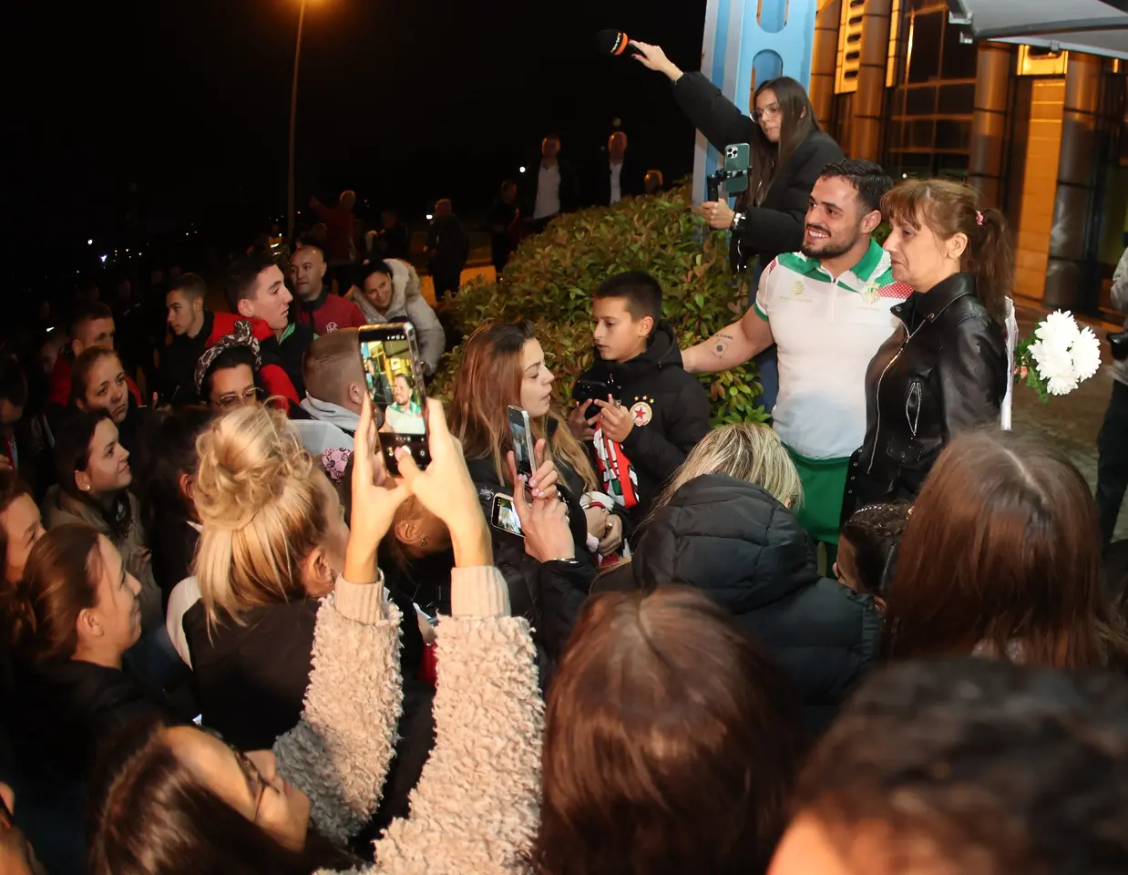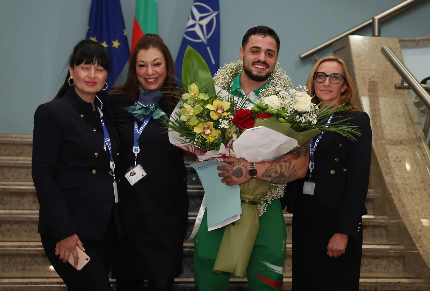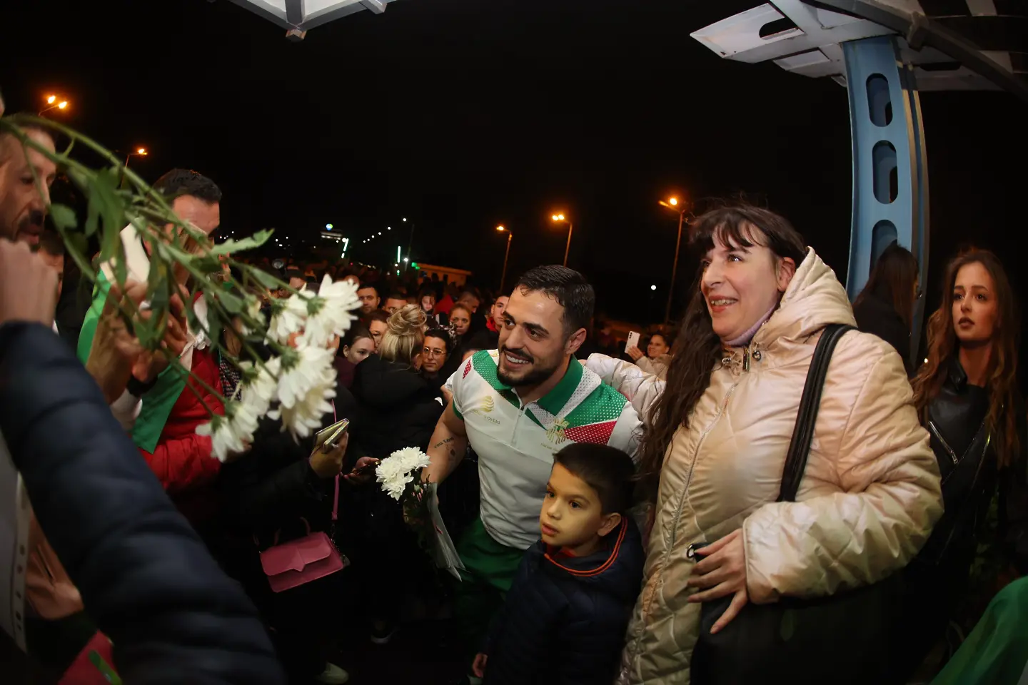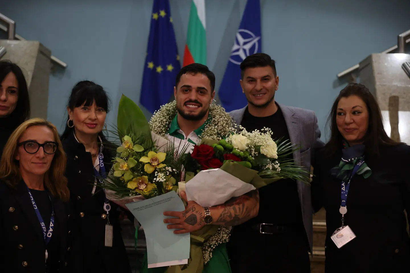 Стотици посрещнаха големия шампион Насар. Сред присъстващите бяха цялото му семейство, половинката му в живота Александра Костадинова, както и негови приятели от родния му Червен бряг. Насар се спря пред всеки фен на летище „Васил Левски“ и не отказа снимка и автограф на никого.