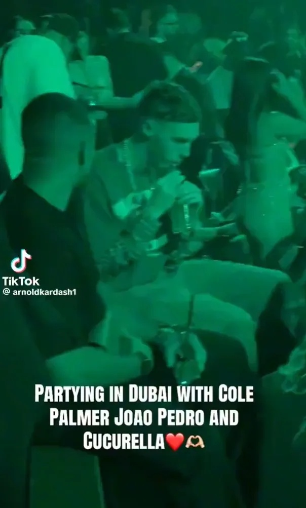 В социалните мрежи се появи видео, на което се вижда как триото се забавлява в нощен клуб в Дубай. На кадрите Коул Палмър седи с питие в ръка, докато съотборниците му танцуват заедно. Партито се е състояло в популярния клуб „Blu“, който се самоопределя като „истинското петзвездно клубно изживяване“.